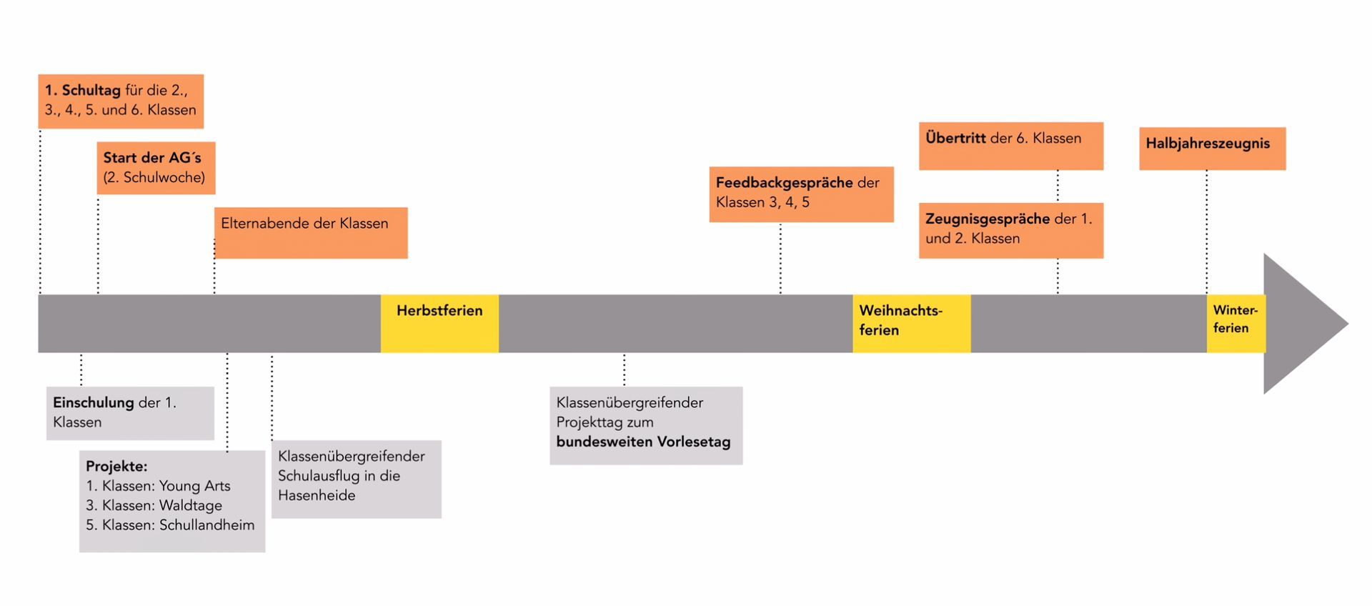 Für das erste Schulhalbjahr meist diese Termine, Projekte und Ausflüge geplant, die mehrere Klassen oder die ganze Schule betreffen. So sieht das bisher ungefähr aus:
